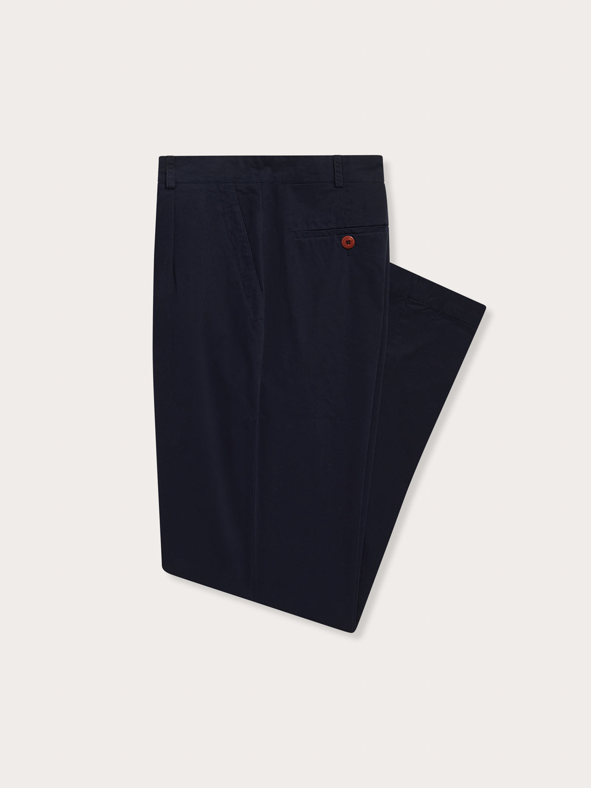Meet your new wardrobe hero: our Men’s Navy Blue Lyford Chino trousers. Crafted from 100% soft, breathable cotton in a timeless navy blue, these cotton chinos offer the perfect blend of vintage style and modern comfort. Versatile enough to pair effortlessly with anything, from casual tees to unstructured jackets, these navy chinos are a staple for every occasion.