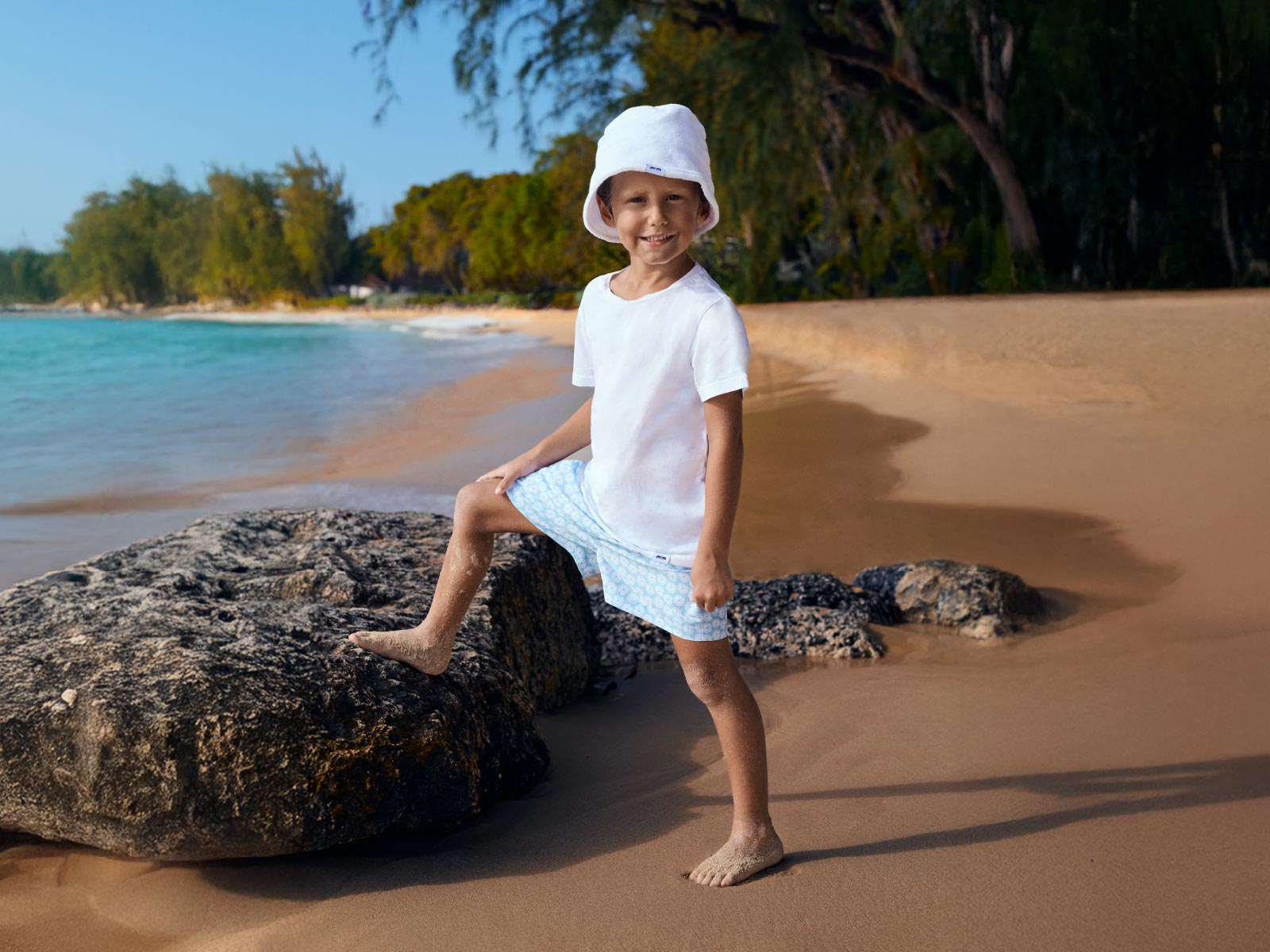 Perfect for sun protection on island days, our kids bucket hats are crafted from 100% cotton terry towelling. Soft against the skin, breathable and easy-to-wear they're a beach day essential.