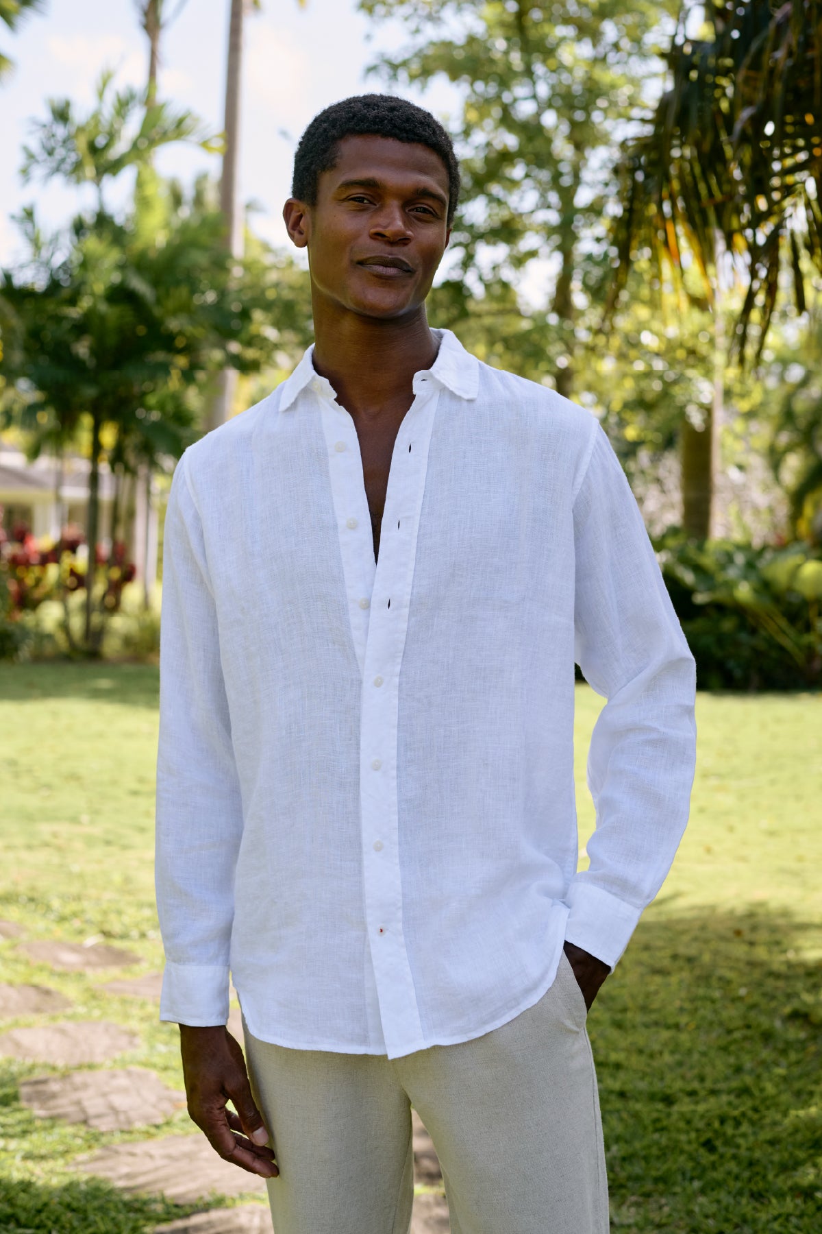 Absolutely, each long sleeve linen shirt for men is designed to be effortlessly versatile. Pair them with one of our linen jackets for a dressed-up look, or wear open with a pair of our swim shorts for the perfect relaxed beach look.