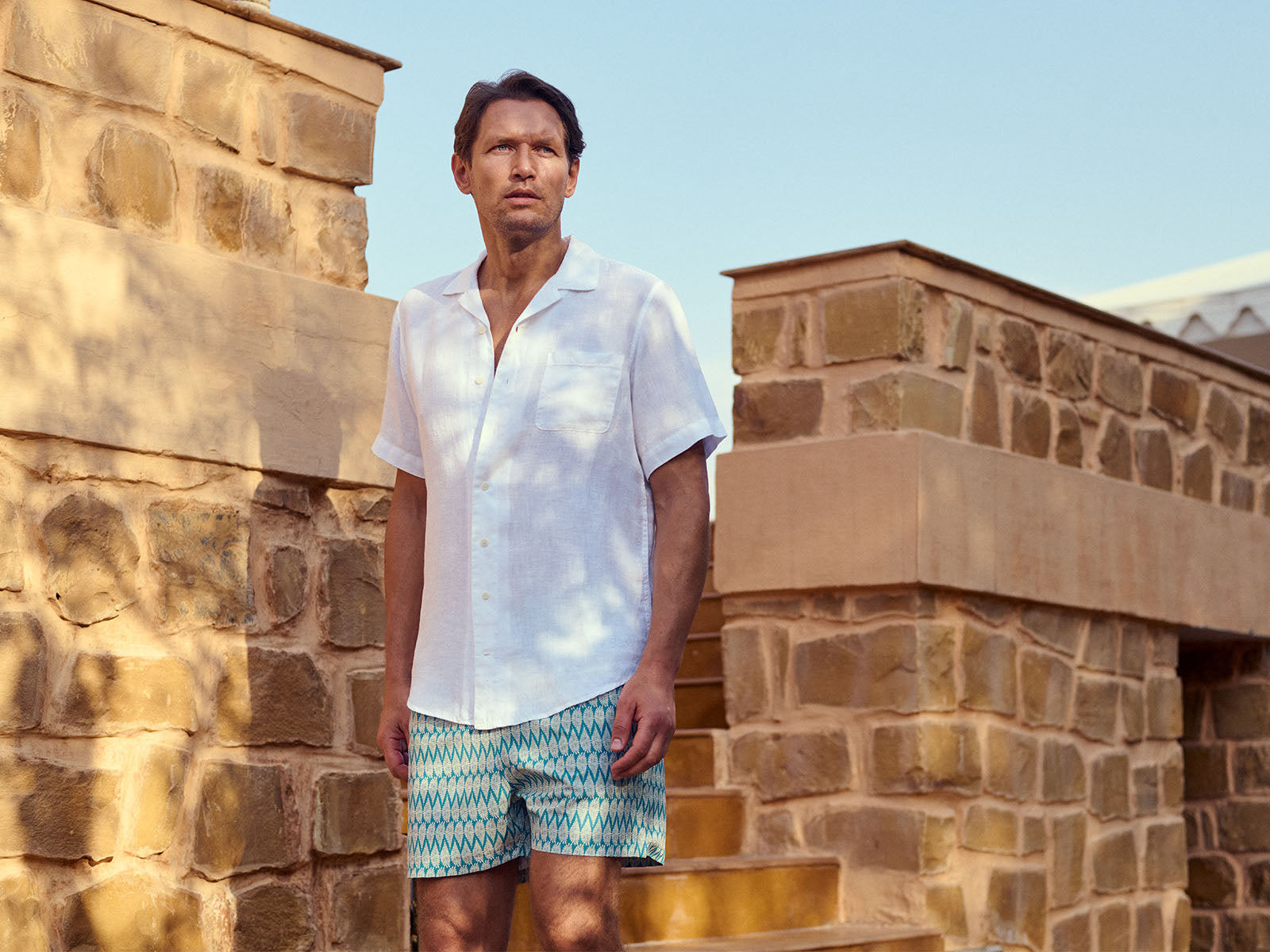 Keep effortlessly cool and sophisticated on your sunshine getaway with our collection of lightweight men's shirts, tops and jackets.